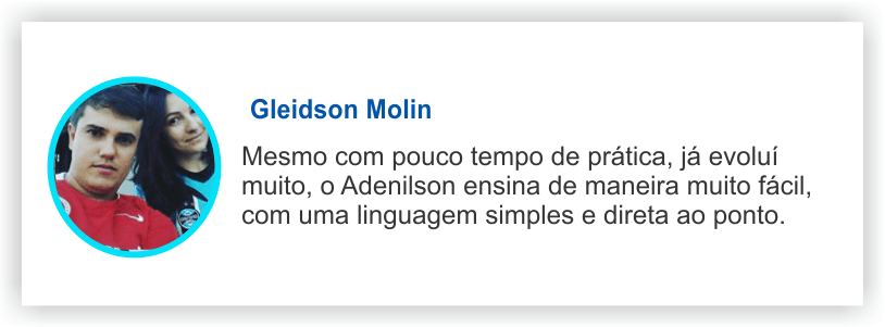 “Com os cursos do Professor Adenilson obtive os conhecimentos que precisava. o Adenilson é um profissional muito capacitado, com um suporte pós vendas incrível. Isso sem falar que ele sempre entrega mais do que promete!”