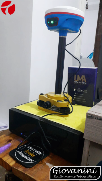 Os instrumentos topográficos necessários (base nivelante, tripé, bastão extensor para a base e bastão para o rover) devem ser comprados separadamente.