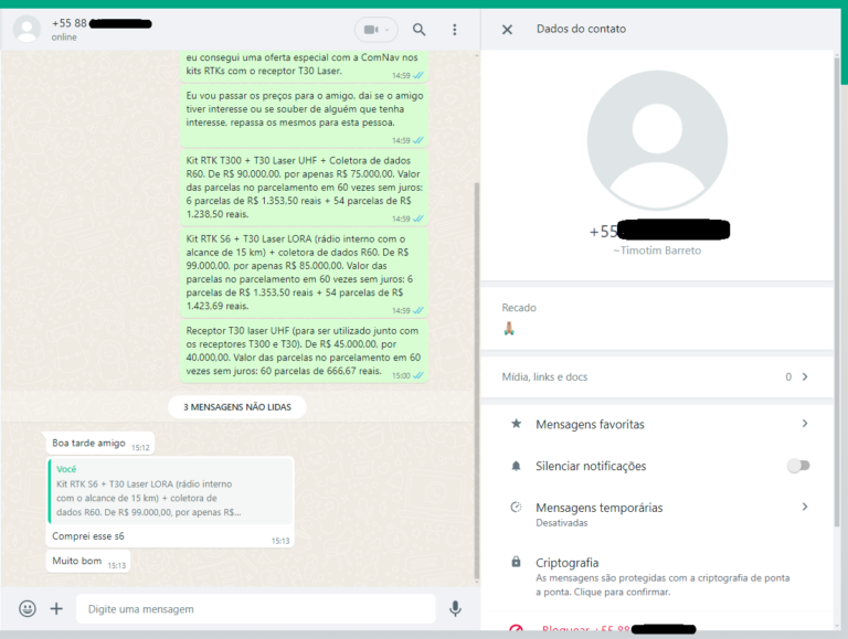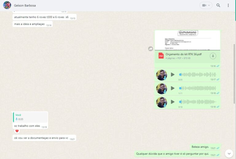 Me envie uma mensagem no WhatsApp que eu passo todos os detalhes do kit RTK S6 para você.