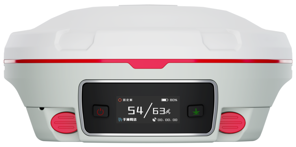 2 LEDs: ndicando rastreamento de satélites, correção de dados RTK, 1 Display e 2 botões de função
