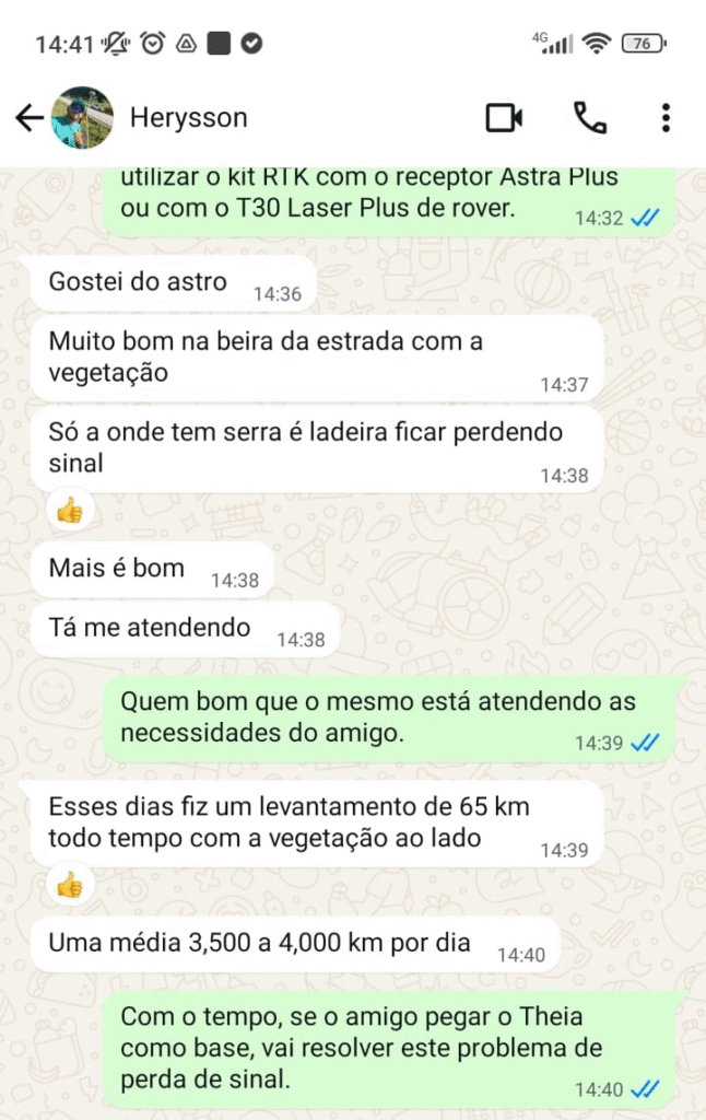 kit RTK completo – Par de receptores (Theia e Astra Plus) + coletora de dados + acessórios: 100 parcelas de 698,65 reais.