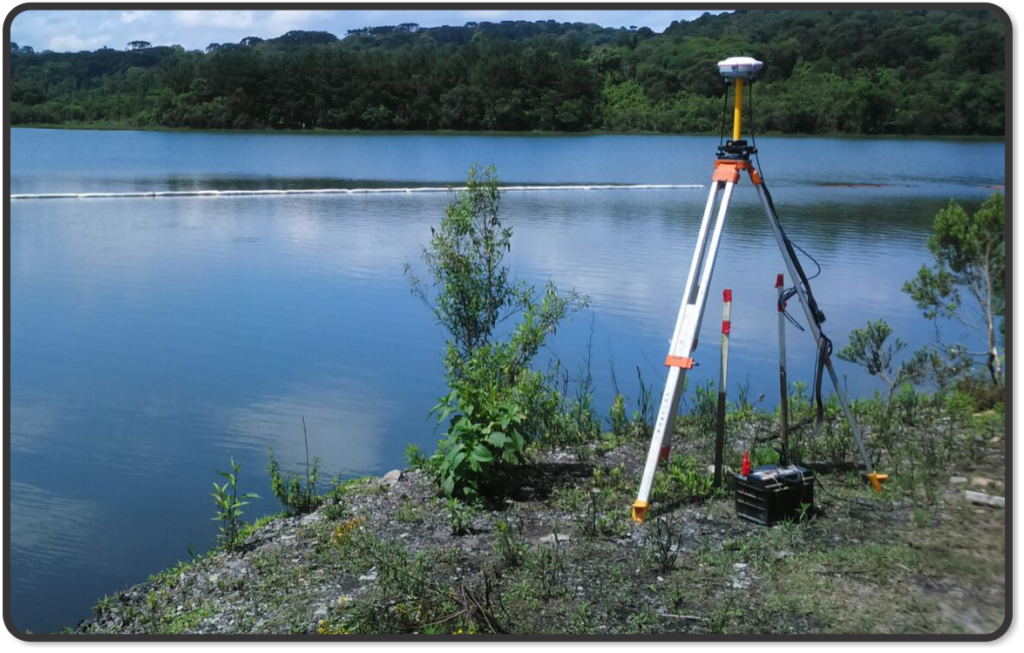 O mesmo utiliza o software Survey master, um poderoso software baseado em Android, que possibilita a realização de levantamentos com precisão de centimetros.